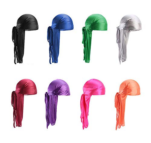 8-pack durag med lång svans, unisex durag, huvudbonader, breda remmar, pirat, håravfall, turban, hatt för kvinnor och män, hip-hop och daglig dekoration, flera färger