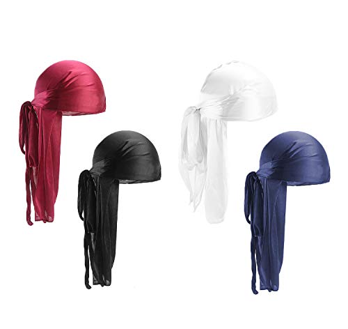 4-pack durag med lång bakdel, unisex durag, huvudbonader med breda remmar, pirat, håravfall, turban, hatt för kvinnor och män, hiphop och daglig dekoration, flera färger