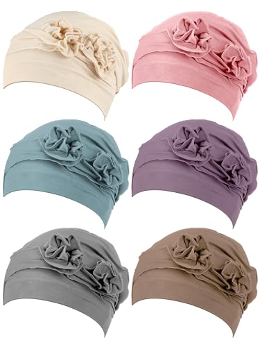 JenPen 6 delar kvinnor turban blommössor kemo huvudbonad keps vintage mjuka turbaner mössor huvudduk elastisk huvudbonad hatt, Ljus färg, one size
