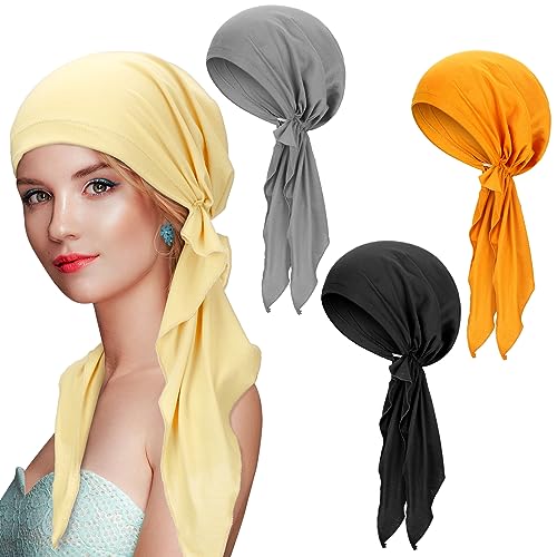LSGGTIM 3 st turban dam kemo-huvudbonad, cancermössor, huvudduk, dambandana, beanie, hatt, bomull, kemo-hattar, slouchy turban, sovmössa, cancermössa, huvudbonad för kvinnor, cancer håravfall