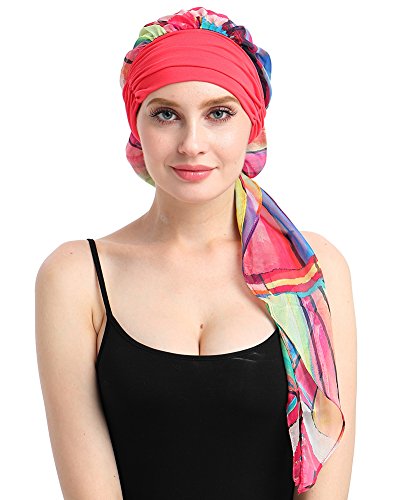 ZLYC Dam Chemo Turban mössa förbunden huvudduk Headwraps lätt hatt, Volanger hot pink, one size