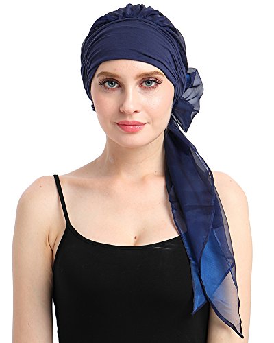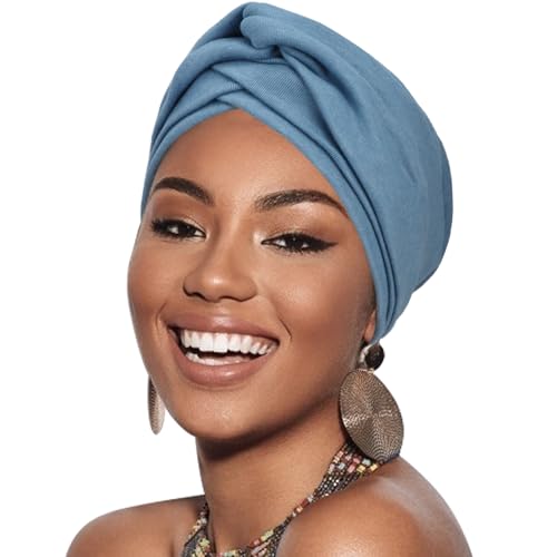 Christine Huvudbonader Shakti Turban | Chemo Huvudbonad | Huvudduk för Dam Med Håravfall | Kemohatt på 95% Viskos Bambu 5% Elastan, Blå, One Size