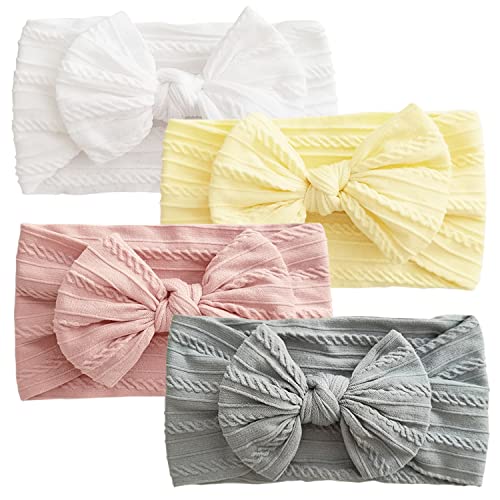 4 st Baby Turban Pannband Baby Girl Nylon Pannband Baby Rosett Pannband Mjuk rosett Huvudbonad Elastiska hårband för nyfödd baby, småbarn