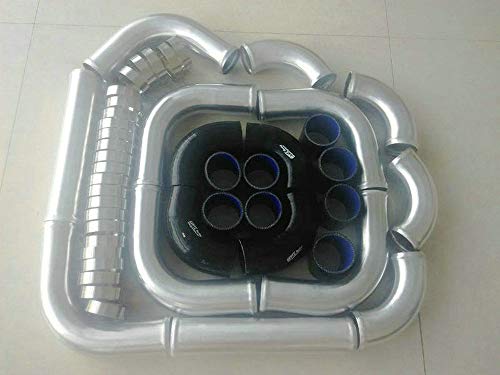 FSMOTO 12 st 76 mm 3 tum universellt aluminiumrör set polerad aluminium turbo intercooler rör + 12 armbågsslang + 24 klämmor kit (svart)