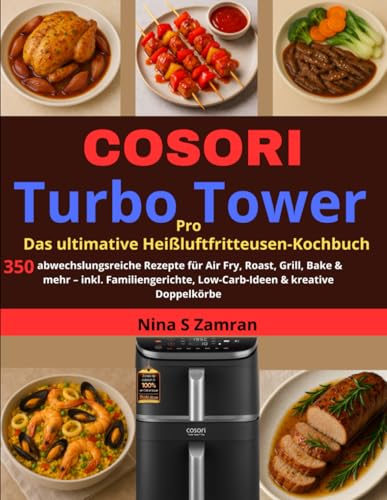 COSORI Turbo Tower Pro – Das ultimative Heißluftfritteusen-Kochbuch: 350 abwechslungsreiche Rezepte für Air Fry, Roast, Grill, Bake & mehr – inkl. ... Low-Carb-Ideen & kreative Doppelkörbe