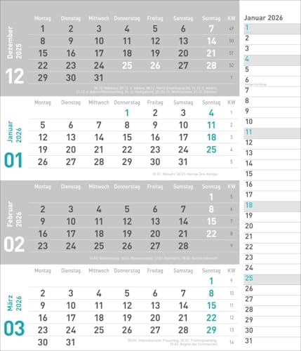 times&more 4-Monatsplaner, türkis 2026: times&more - Praktischer Wandplaner mit Datumsschieber. Büro-Kalender mit Notizspalte und Jahresübersicht. Wandkalender 2026 fürs Büro. 30 x 35 cm.