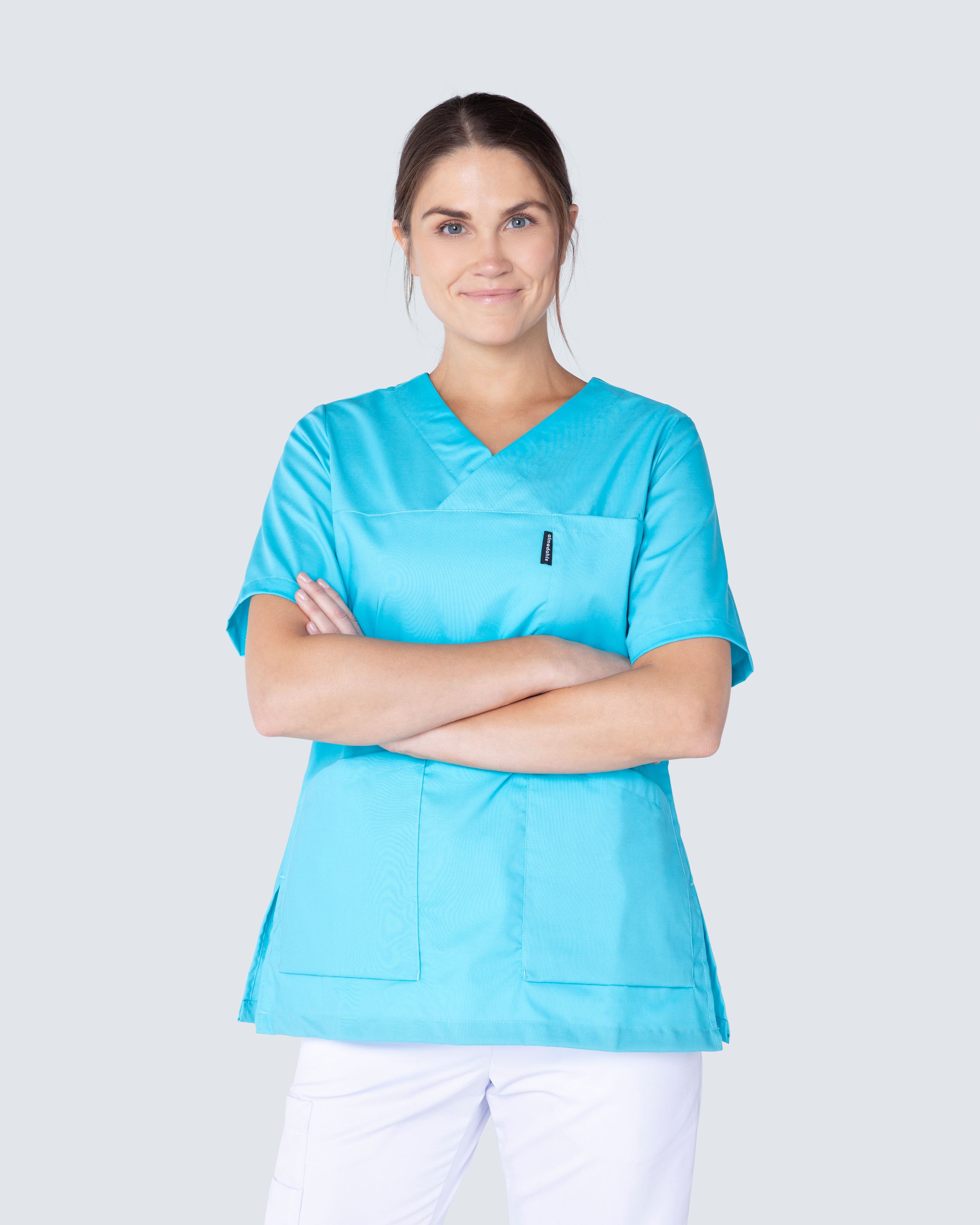 Adar Universal sjuksköterskejacka - varm rund hals blus, turkos, 4XL