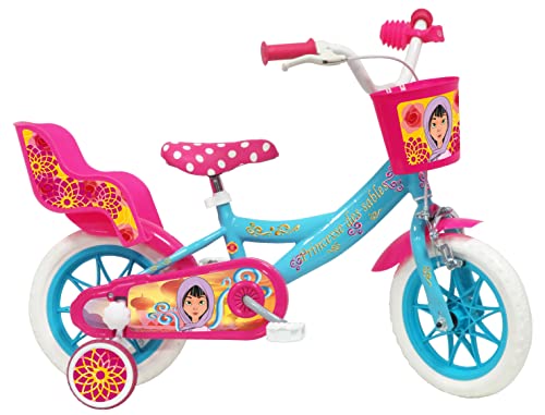 Vélo ATLAS Princesse des Sables 14 tum Princess of Sables cykel utrustad med en framkorg, bakdocka, 2 flickbromsar och stabilisatorer, turkos