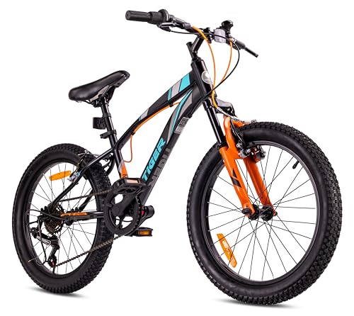 Tiger Bike Barncykel för pojkar 20 tum hjulstorlek att välja mellan 6 växlad Shimano-cykel för barn 6 till 10 år höjdjusterbar flickcykel (Svart Turkos Grå Orange)