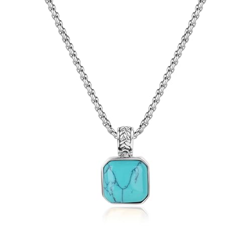 COAI Halsband för män med kedja i rostfritt stål och torghänge av hårda stenar, 50cm, Sten, Skapad turkos