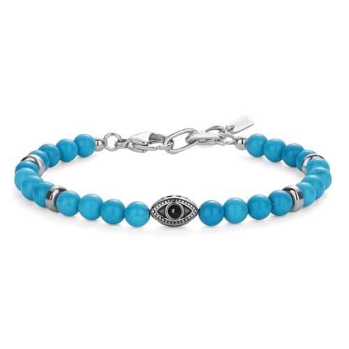 COAI Lyckoamulett turkiskt öga och naturstenspärlor, herrarmband, hård sten onda ögat armband, 19+3cm, Sten, Skapad turkos