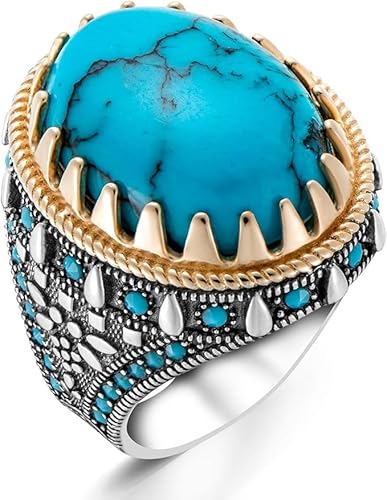 925 sterling silver kung krona modell turkos sten dekorerad mästare arbete handgjord ådrad turkos sten herr ring e sterlingsilver, T