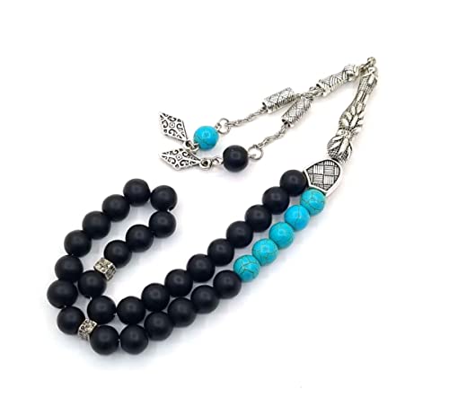 Radband, Tesbih Tasbih Tespih Misbaha Subha 33, 27 cm, muslimskt islamiskt radband, böner, tillbehör, 8 mm, halvädelsten, turkos, onyx, svart, pärlor, kula, 8mm perlen - 27cm Tesbih, Sten, Onyx,