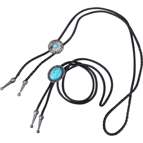 GORGECRAFT 2 stilar Vantage Bolo Tie Cowboy läder turkos sten slips västerländsk indian retro rep rep hänge halsband för kostymtillbehör herr dam, svart, 104 cm 106 cm