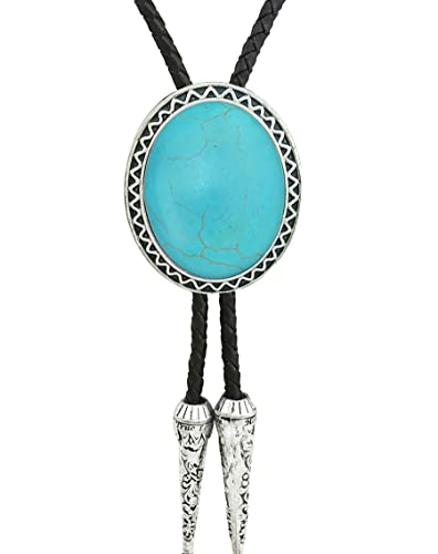 Bolo Slips Rodeo cowboy läder slips västerländsk halsband för män, kvinnor läderhalsband med turkos sten, Läder, metall
