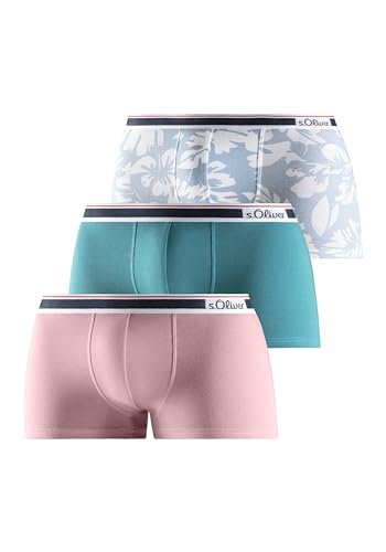 s.Oliver Hipster i 3-pack för män, 2 x unifärger, 1 x tryck, storlek XXL, Turkos + grå melerad + topp, XXL
