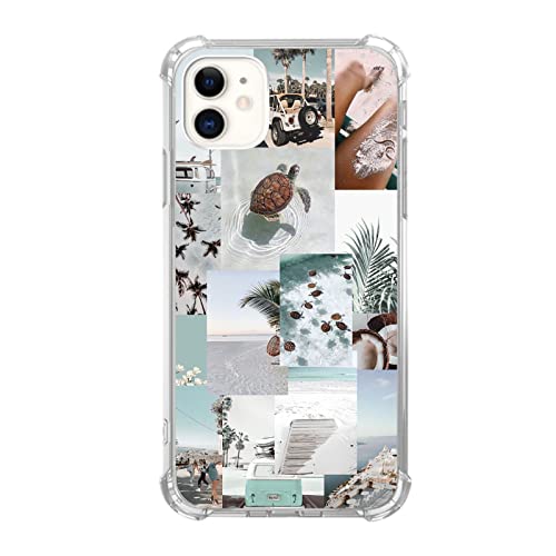 Vusbvelnot Turtle Aesthetic Collage Case Compatible with iPhone 11, Pastel Summer Vibe Beach Ocean Case for iPhone 11 for Teens Men and Women, Cool TPU Bumper Phone Case Cover