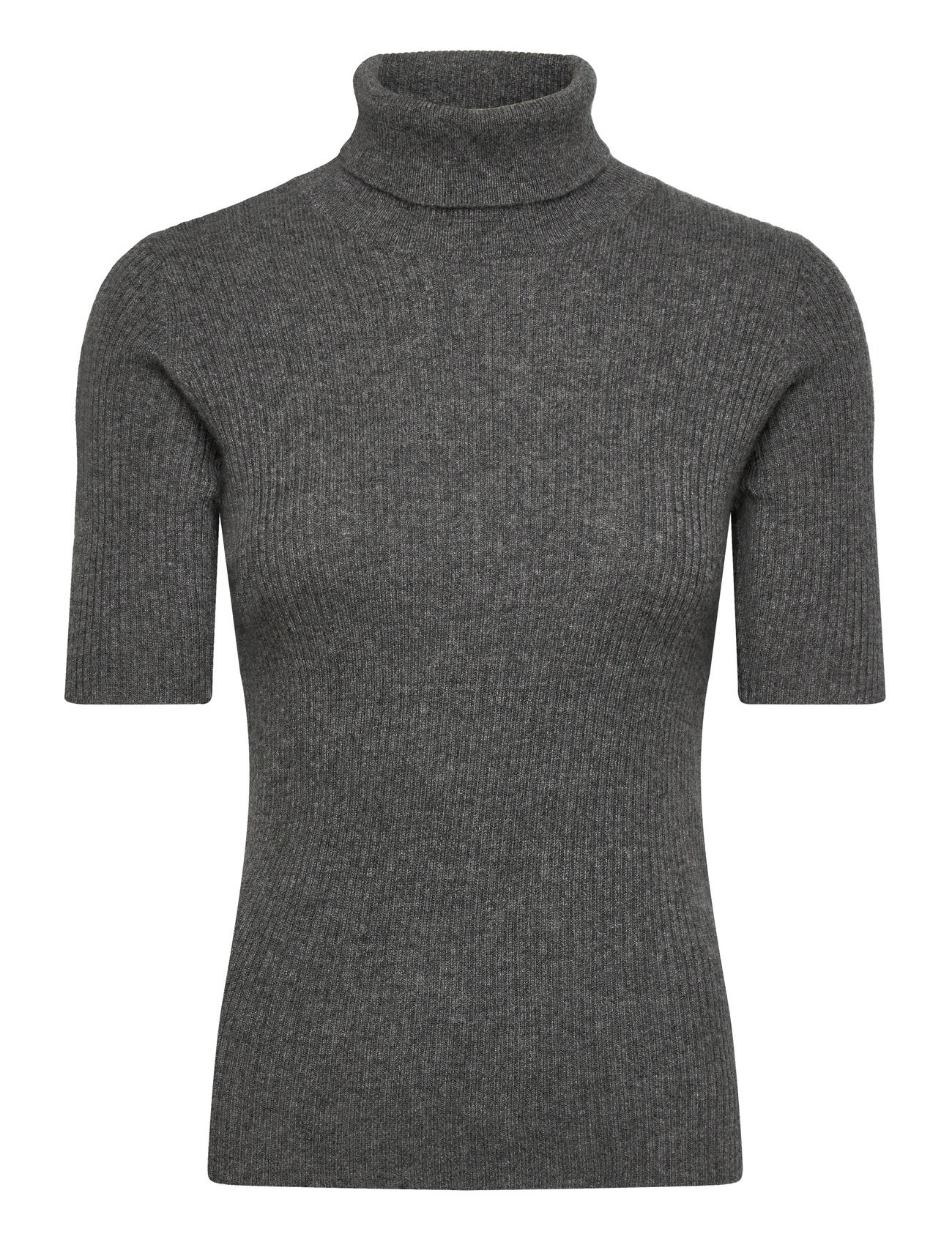 Davida Cashmere Turtleneck Rib T-Shirt Grå