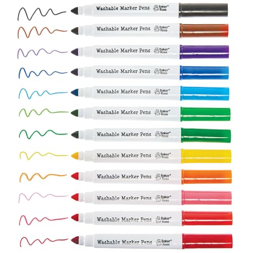 Baker Ross FN513 Tvättbara färgmarkeringspennor - Förpackning med 12, tuschpennor för barn