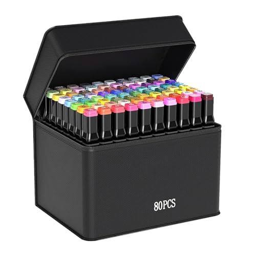 Bafumiu 80 filtpennor för barn, set med tuschpennor, markörpennor, lämpliga för barn och vuxna, inklusive svart fodral, för design, serier, rendering och gör-det-själv-projekt