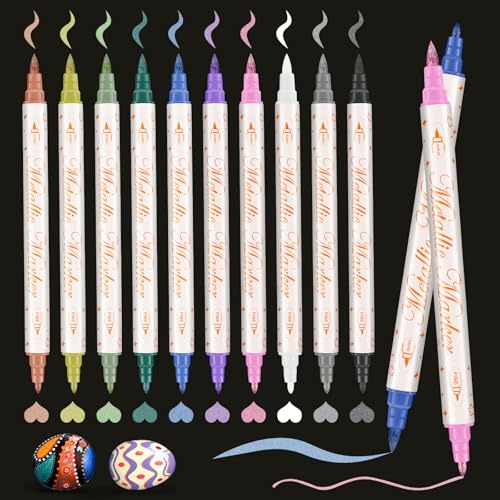 Metalliska tuschpennor, akrylfärgpennor med dubbla spetsar, 10 färger metalliska pennor konsttillbehör för trä, keramik, glas, svart papper, sten, metall, klippbokstillbehör, julklappar för barn och