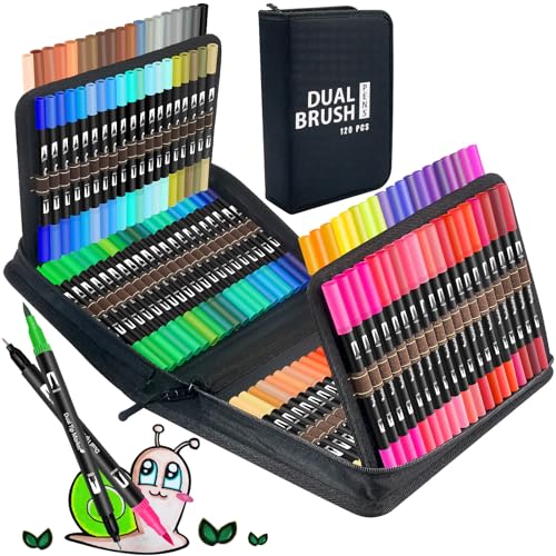 Ohuhu Tuschpennor, 120 färger, dubbel pensel, penselspets, akvarellpennor, set för barn och vuxna, perfekt för dagbok, kalligrafi, manga, målarböcker och handskrift, med bärväska