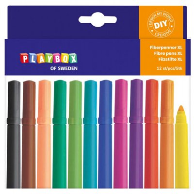Playbox Tuschpennor Jumbo - Basfärger 12 st