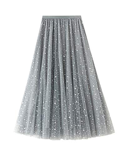 Femiserah Lång regnbåge för kvinnor A-linje tyll tutu kjolar vågig kjol underkjol, Paljetter blå, one size