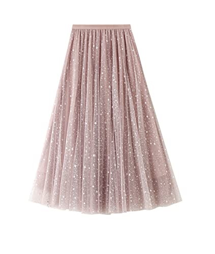 Femiserah Lång regnbåge för kvinnor A-linje tyll tutu kjolar vågig kjol underkjol, Paljetter rosa, one size