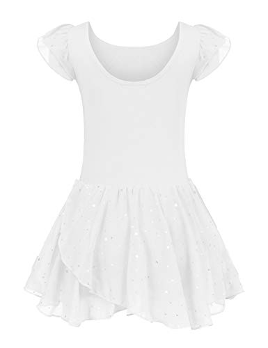 trudge Balettklänning för barn, balettklänning för flickor, kortärmad/långärmad, bomull, balettrikå, balettdräkt, dansklänning, dansbody med kjol, tutu, Vit, 150 cm