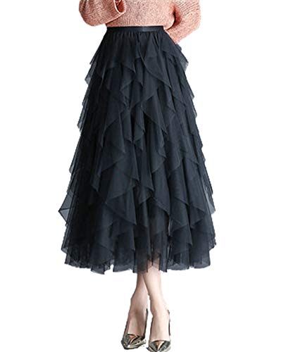 Dam tonåring vuxna klassisk elastisk 3 4 5 lager tyll tutu kjol, 4 lager, svart, En Storlek