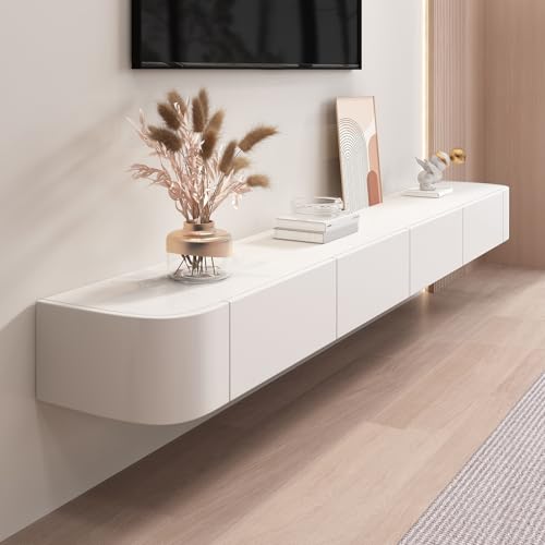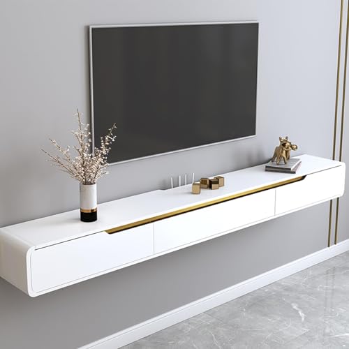 XDXINY Hängande TV-bänk i massivt trä för vardagsrum, hem, soffbord, TV-bänk 140 cm, 160 cm, 180 cm, 200 cm, 220 cm, 240 cm, flera storlekar tillgängliga (vit, 260 x 20 x 24 cm)
