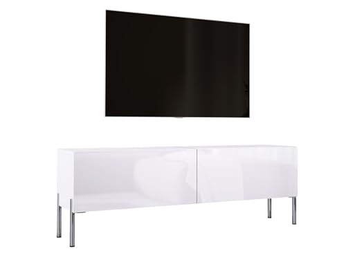 3E 3xE living.com TV-skåp i matt vit/högglansig vit med ben i krom, A: B: 140 cm, H: 52 cm, D: 32 cm, TV-möbel, TV-bord, TV-bänk