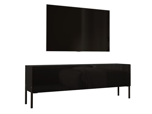 3E 3xE living.com TV-skåp i matt svart med ben i svart, A: B: 140 cm, H: 52 cm, D: 32 cm, TV-möbel, TV-bord, TV-bänk