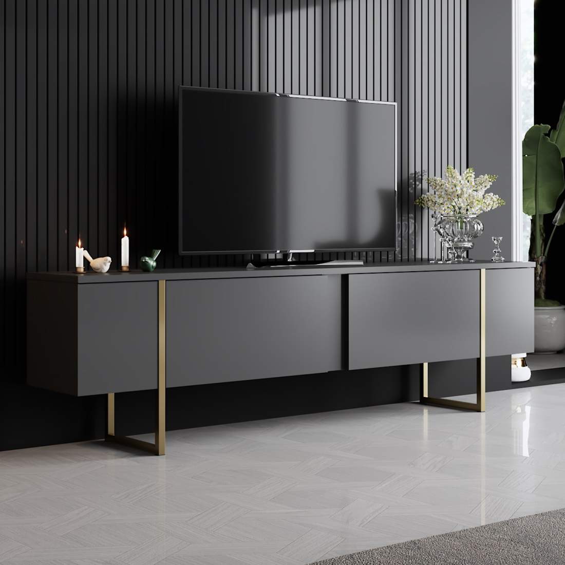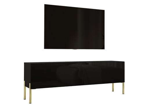 3E 3xE living.com TV-skåp i matt svart med ben i guld, A: B: 140 cm, H: 52 cm, D: 32 cm, TV-möbel, TV-bord, TV-bänk