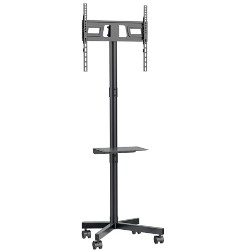ONKRON Mobilt TV Stativ på Hjul för 40 – 80 Tum Skärmar, Rullande TV Stativ Golv Hjul upp till 55.5 kg - Golvstativ TV Hjul VESA 200x200-700x400/Rullbar TV Bänk Hjul med Hylla TS2771-B Svart