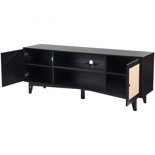 TV-bänk, 167.7x39.7x63.6 cm, Svart, Förvaring i rotting