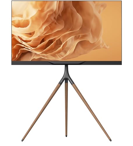 ONKRON Interiör TV Stativ Tripod för 32 – 65 Tum Skärmar upp till 35 kg - TV Bänk Massivt Trä VESA 100x100 - VESA 400x400 / Golvstativ TV med Tre Ben Justerbar Höjd Sväng 360° TS1220-B Svart