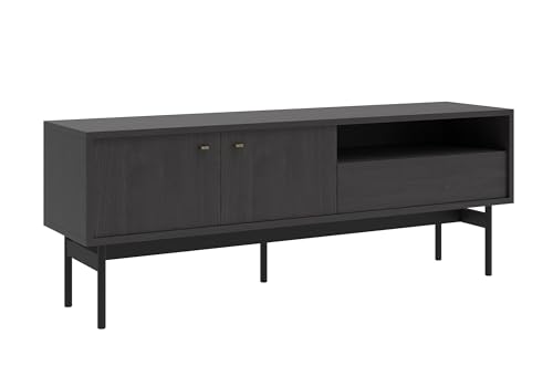 Selsey TV Board Stående på ben TV-skåp med låda två dörrar hylla 154 cm Portland Ash Black Olar
