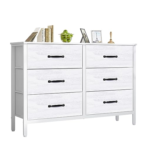 LYNCOHOME Byrå med 6 tyglådor, Vit sovrumsbyrå, förvaringsenhet, sovrumsmöbler, lådskåp för kök, kontor, hall, TV-skåp med lådor