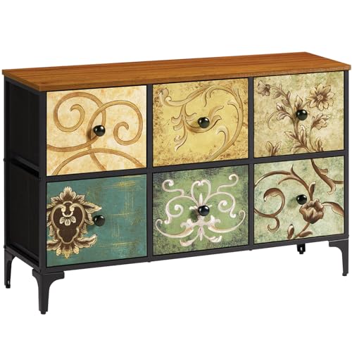 LYNCOHOME byrå med 6 tyglådor, sovrumsbyrå, förvaringsenhet, sovrumsmöbler, lådskåp för kök, kontor, hall, TV-skåp med lådor, lantlig stil