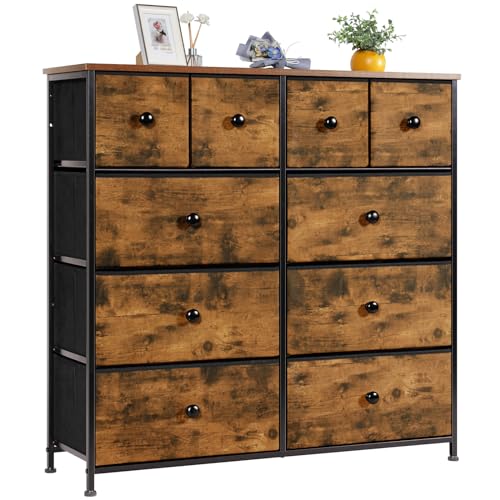 LYNCOHOME Byrå med 10 tyglådor, Sovrumsbyrå, förvaring, sovrumsmöbler, lådskåp för kök, kontor, hall, TV-skåp med lådor