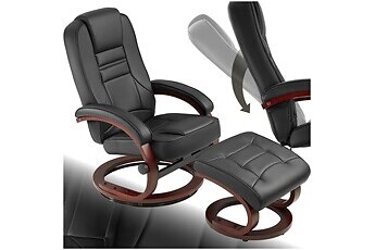 Avslappningsfåtölj vridbar tv-fåtölj med liggfunktion och fotstöd kan rymma upp till 150 kg, tv-fåtölj av konstläder i svart för