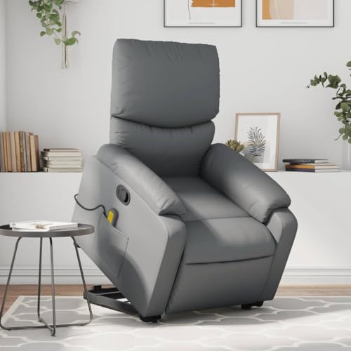 Homgoday Massagefåtölj med uppresningshjälp, relaxfåtölj, TV-fåtölj med liggfunktion, vilstol, solstol, TV-fåtölj, för vardagsrum, grått konstläder