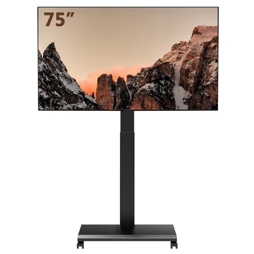 FITUEYES TV Stand on Wheels for 32-75 Inch TVs, Hand Crank Height Adjustable Mobile TV Cart, Tilt & Swivel Portable TV Stand with Iron Base, Tall TV Floor Stand Holds 40kg Max VESA 600×400mm