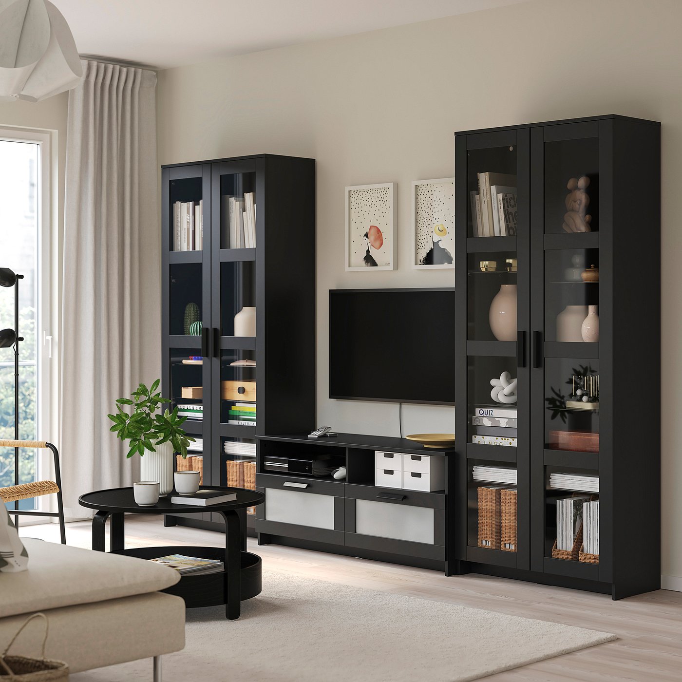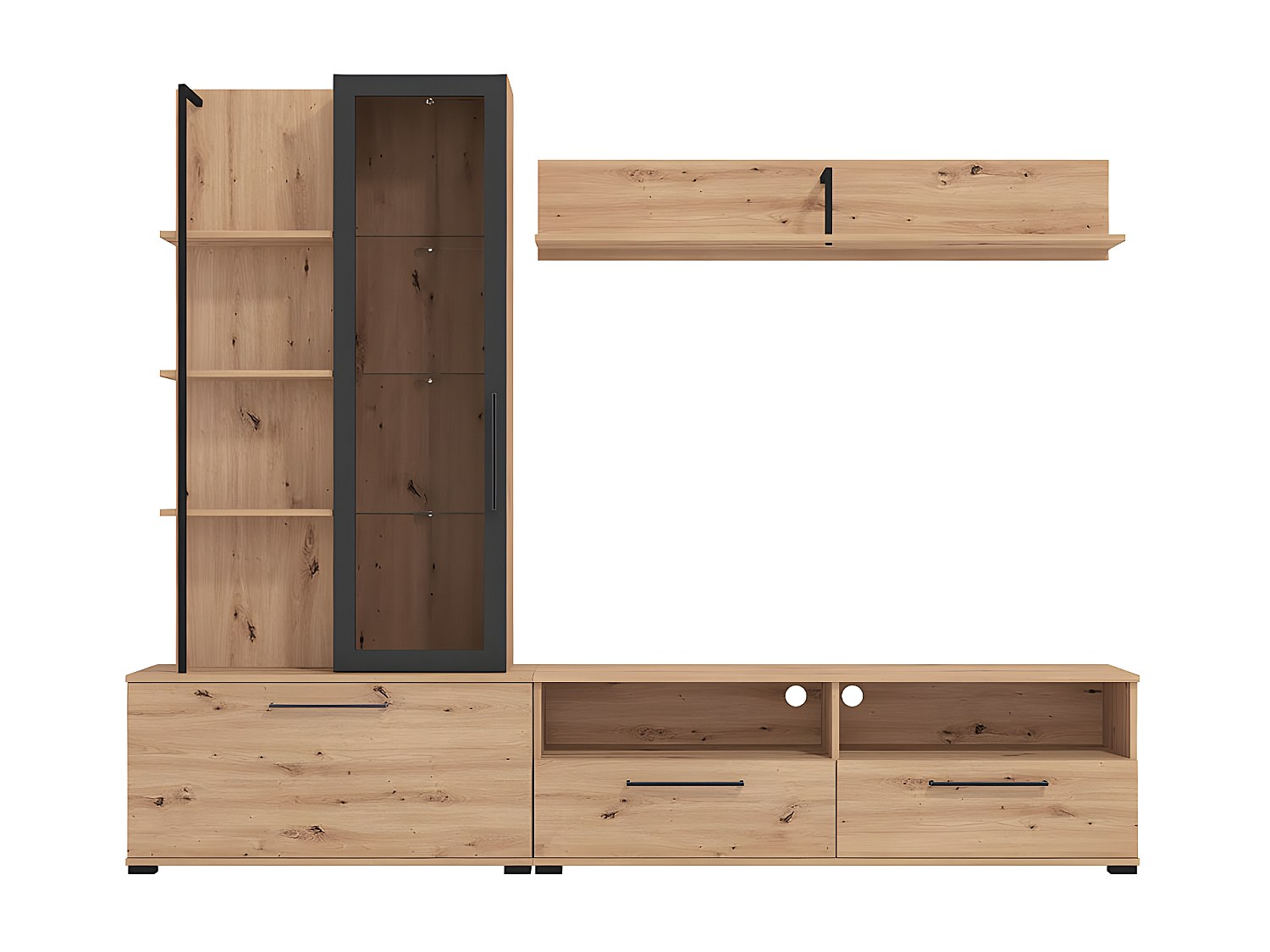 TV-vägg med förvaring i ek och svart DUBLIN