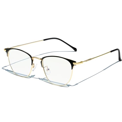 Eterspr Blåljusfilter glasögon, datorspelglasögon, anti-trötthet läsglasögon, för män kvinnor UV, PC mobiltelefon och TV, svart guld med glasögonfodral, Svart guld, 5.51 X 5.63 inch