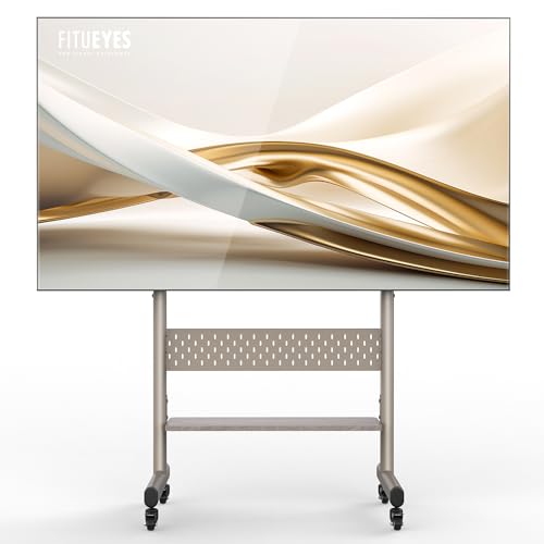 FITUEYES TV-stativ på hjul för 32-75 tum, landskap för porträtt mobil TV-vagn, TV-golvstativ med 40° vridbar och 7 justerbar höjd, bärbart TV-stativ max. VESA 600 x 400 mm rymmer 40 kg