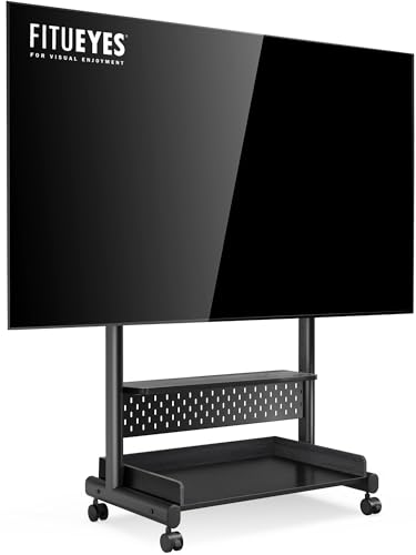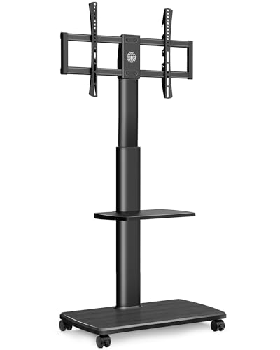 FITUEYES Mobilt TV-stativ på hjul för 40-85 tum, höjdjusterbart TV-golvstativ högt med förvaringshylla, bärbar rullande TV-vagnvagn Max VESA 600x400mm 60KG