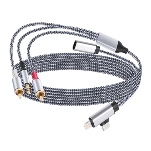 Lightning/USB typ C till 2 RCA Aux-kabel 2,2 m, cinch-/AUX-kabel med laddningsfunktion, för Lightning/USB typ C-gränssnitt, kompatibel med iPhone/Huawei/Samsung Galaxy/Google Pixel/TV, MP3, högtalare